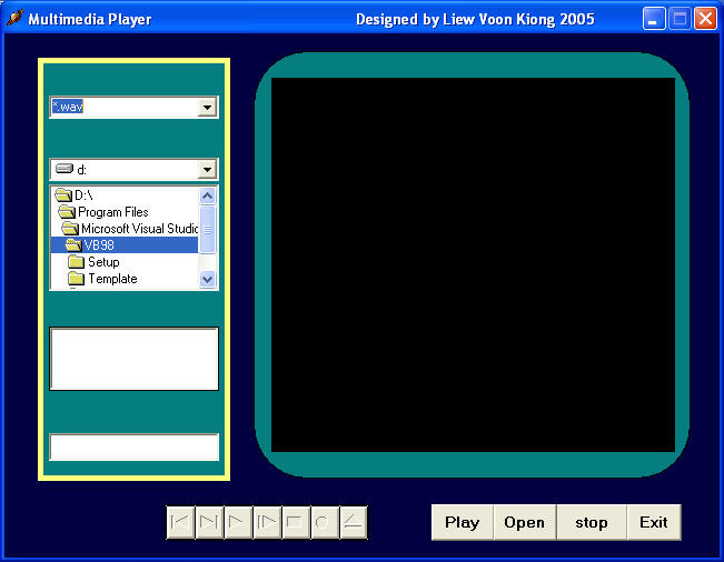 Previous ImageNext Image multimedia player Multimedia Player This is a multimedia player created using vb6